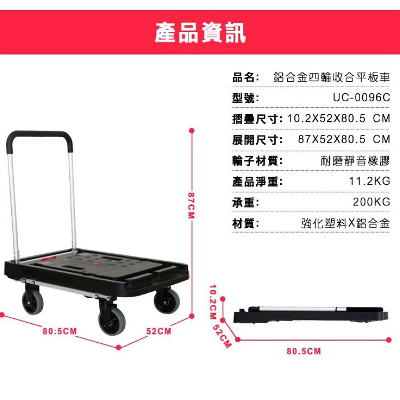 【優卡得U-Cart】鋁製平板車 承重200kg