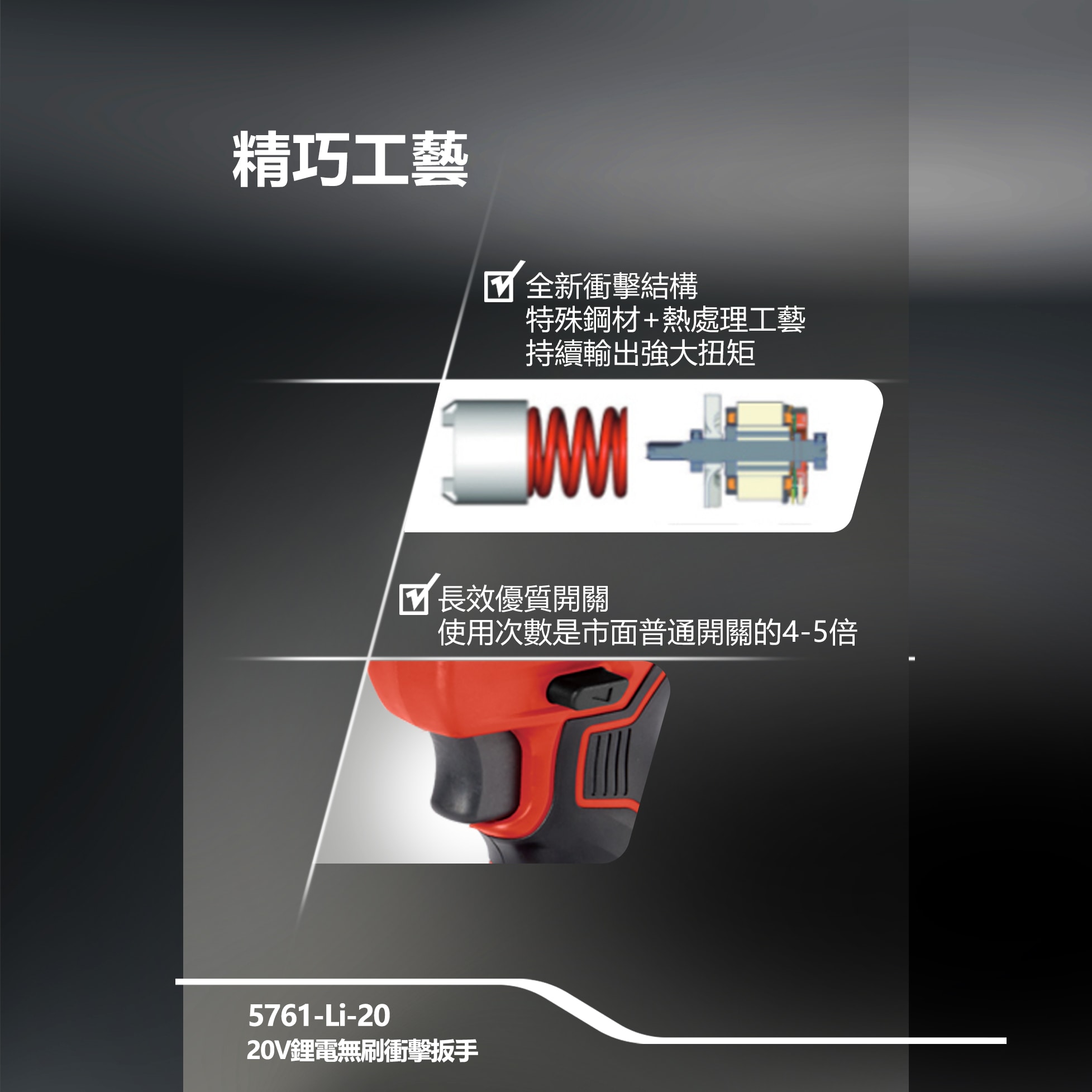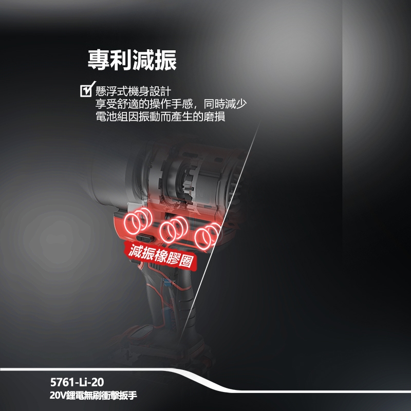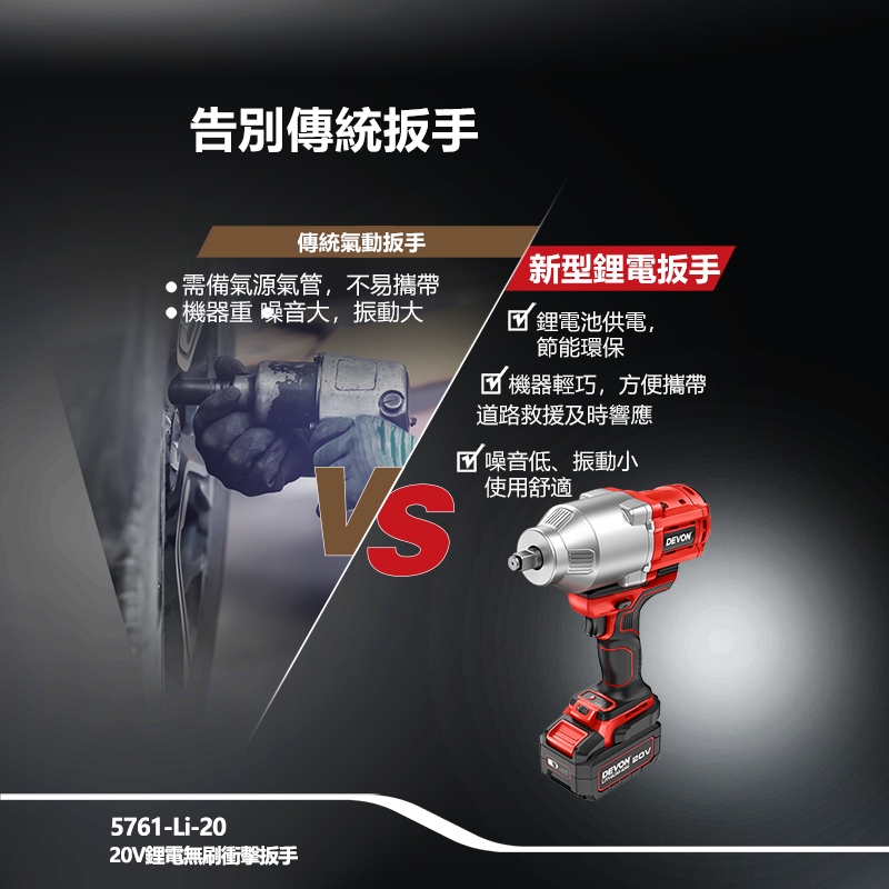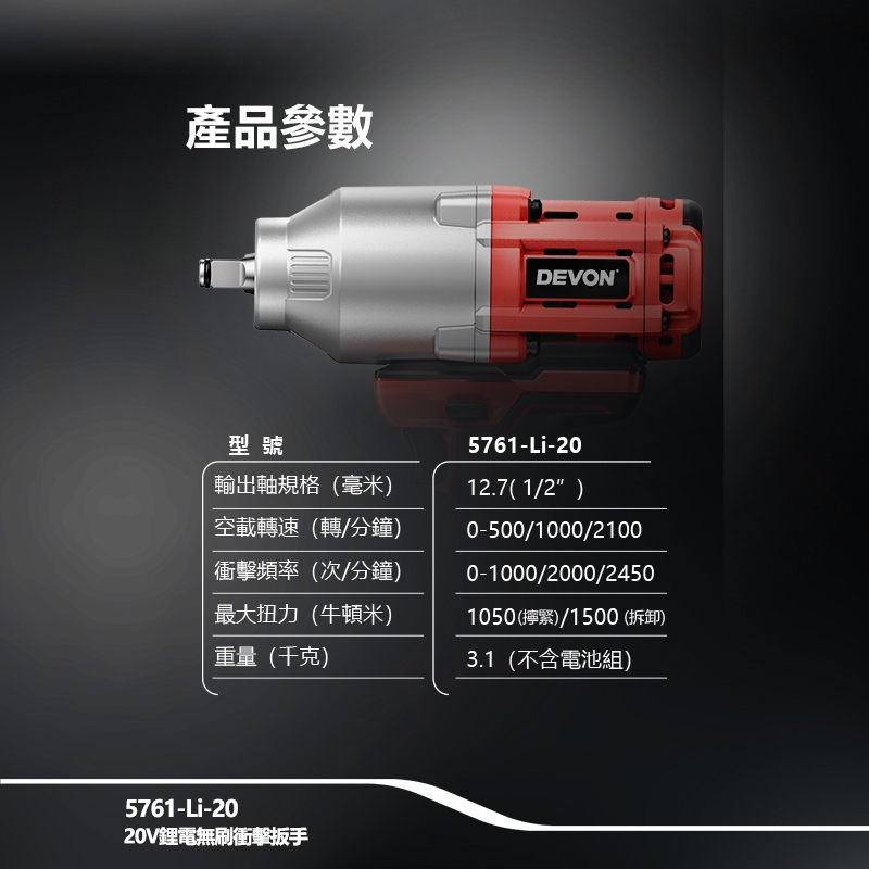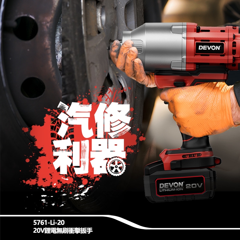 【大有DEVON】20V充電無刷電動扳手|5761
