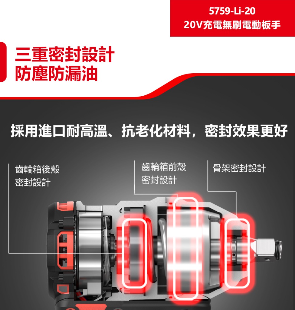 三重密封設計防塵防漏油