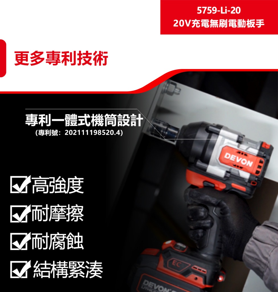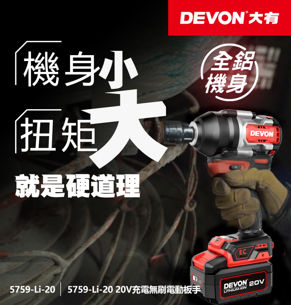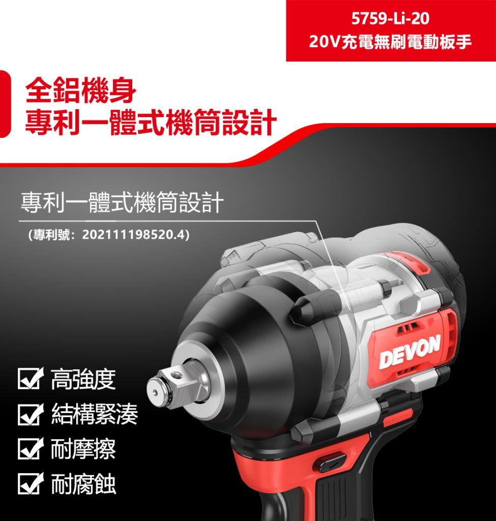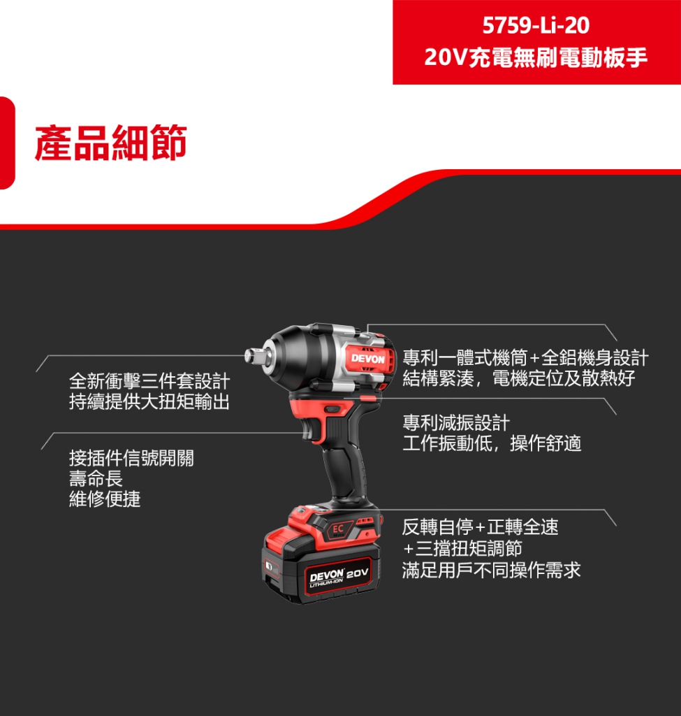 【大有DEVON】20V充電無刷電動板手|5759