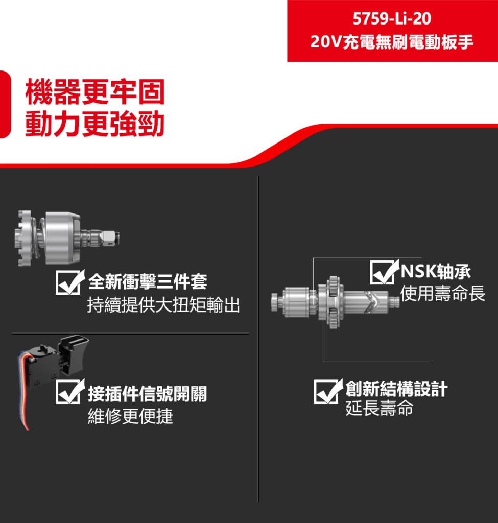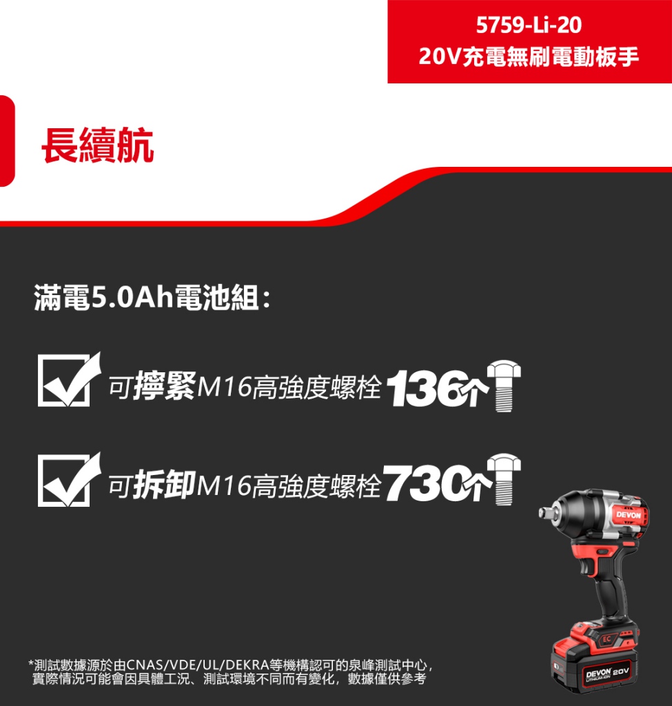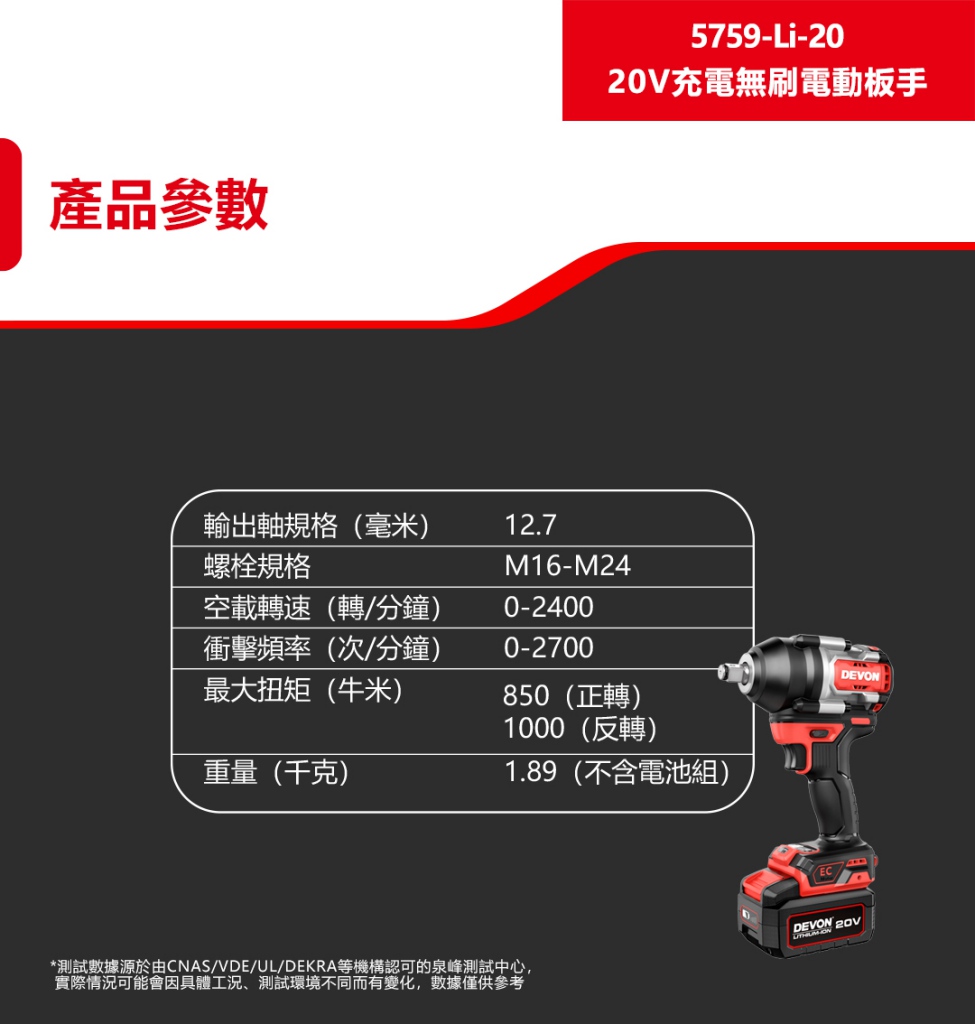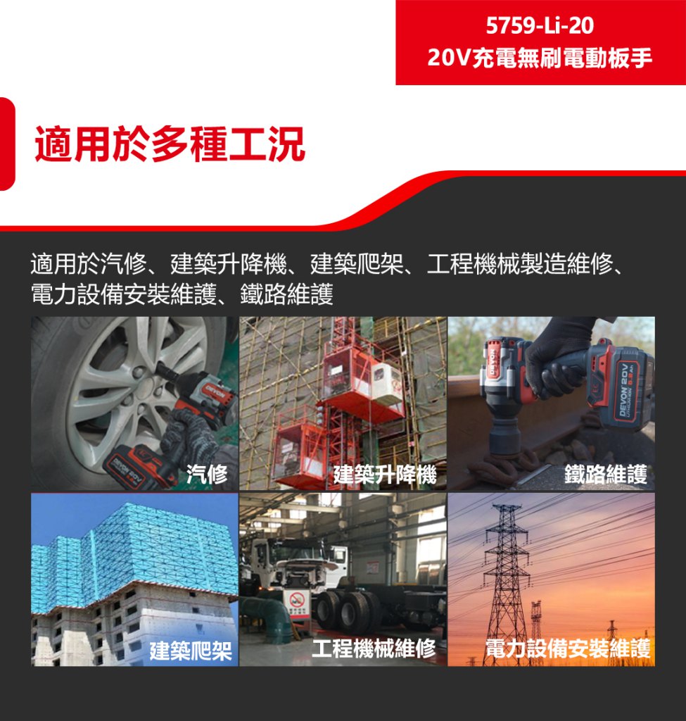 【大有DEVON】20V充電無刷電動板手|5759