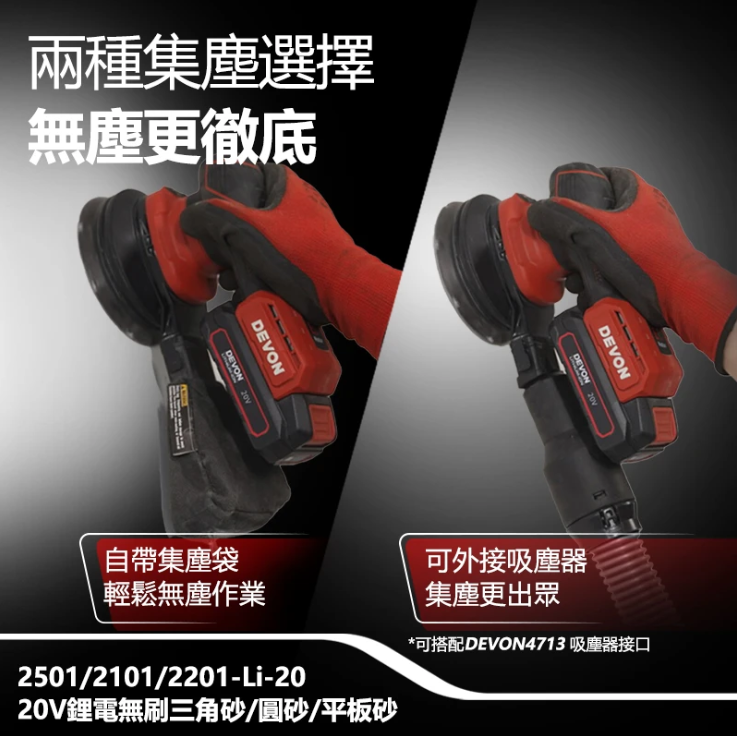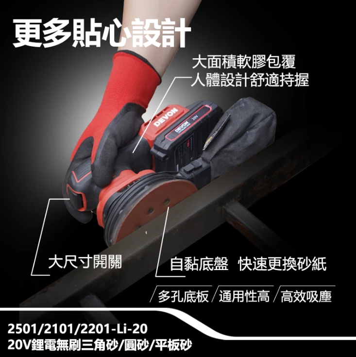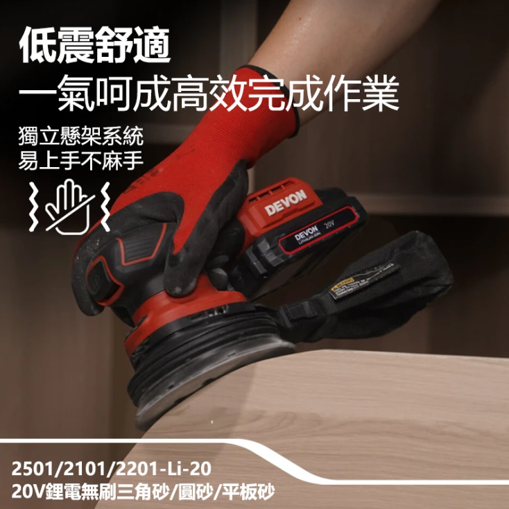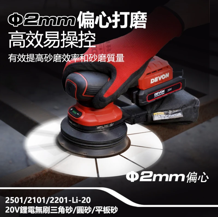 【大有DEVON】20V鋰電無刷砂紙機(圓砂)|2101